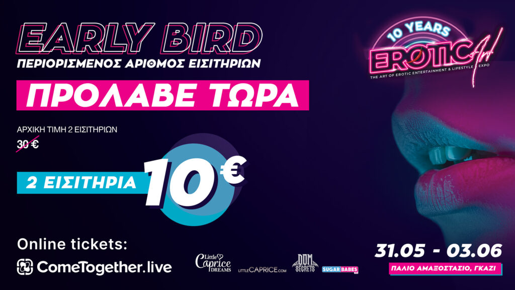 Το Μεγαλύτερο Φεστιβάλ Ερωτισμού στην Ελλάδα που έγινε θεσμός, επιστρέφει αυτό το καλοκαίρι από 31 Μαΐου έως 03 Ιουνίου στο Παλιό Αμαξοστάσιο στο Γκάζι γιορτάζοντας τα δέκα χρόνια ζωής του!